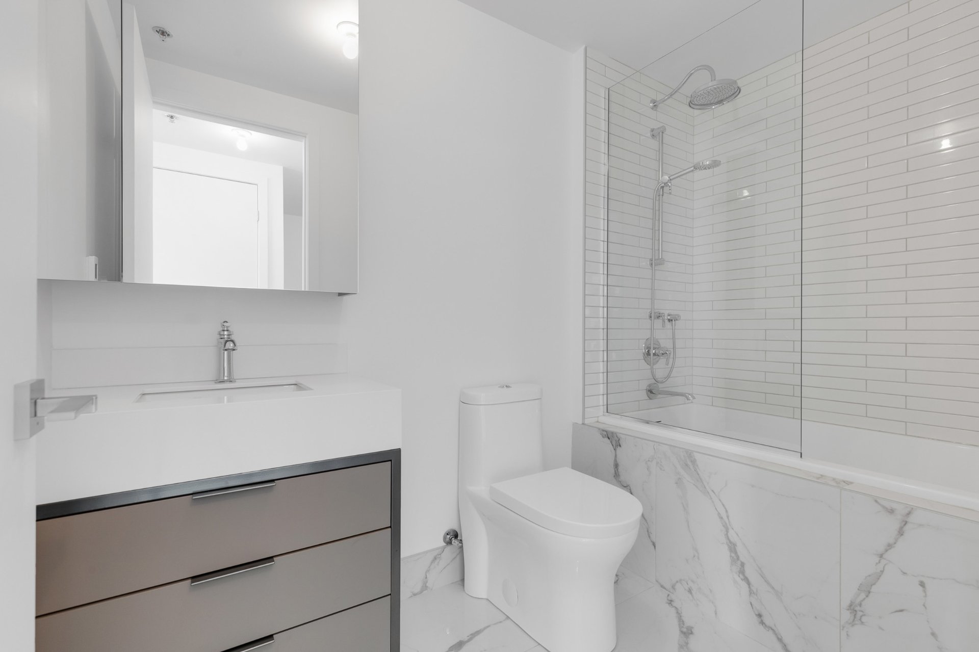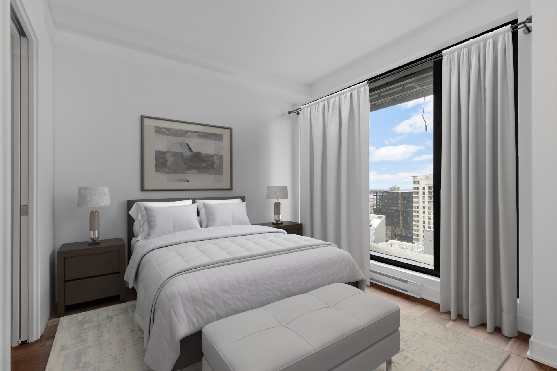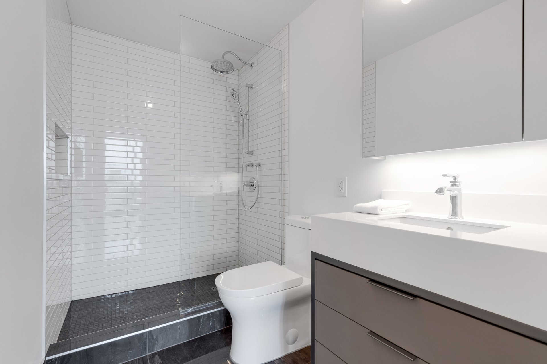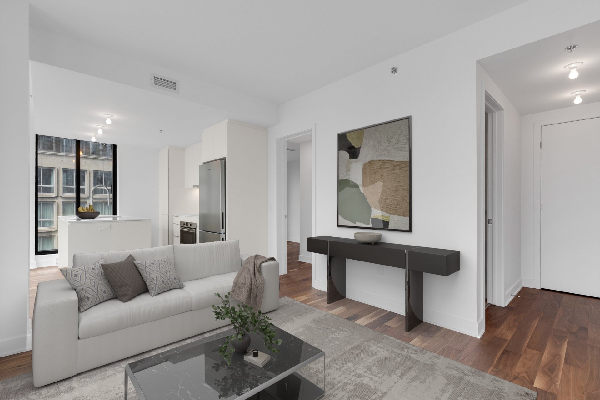 Fridge, stove, dishwasher, microwave, washer and dryer. One parking space. One indoor storage locker.