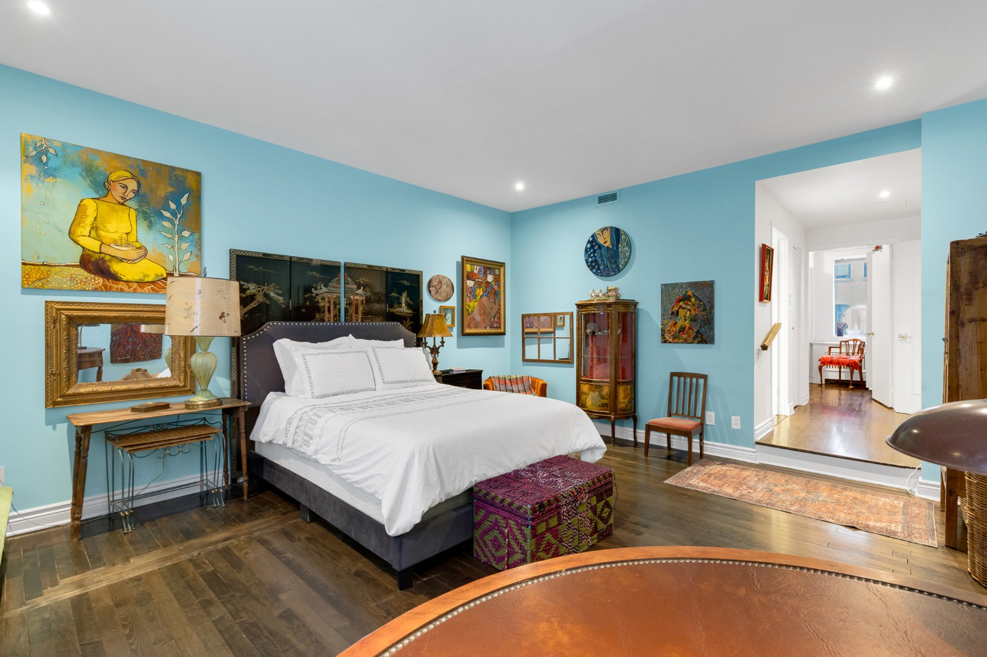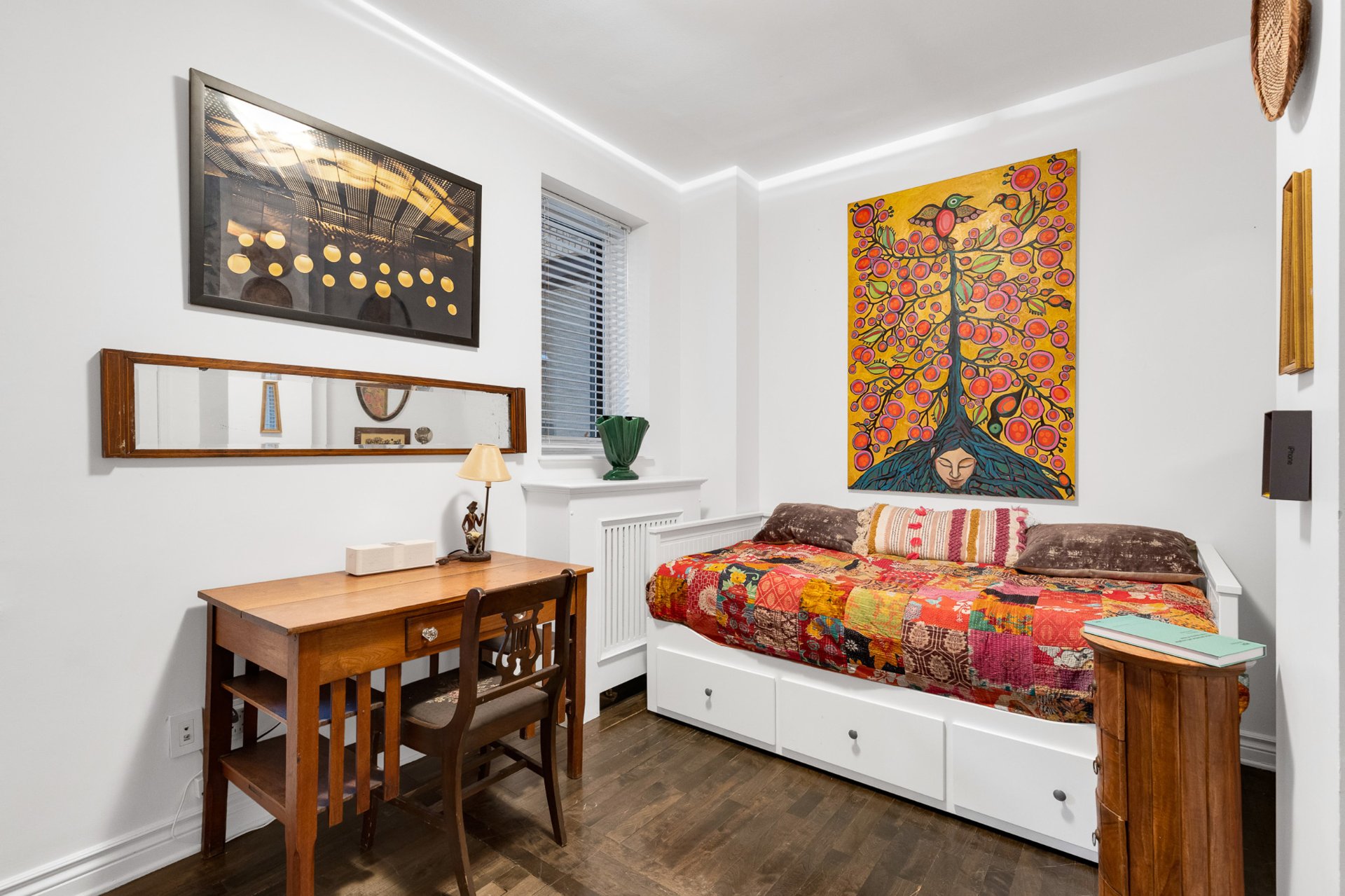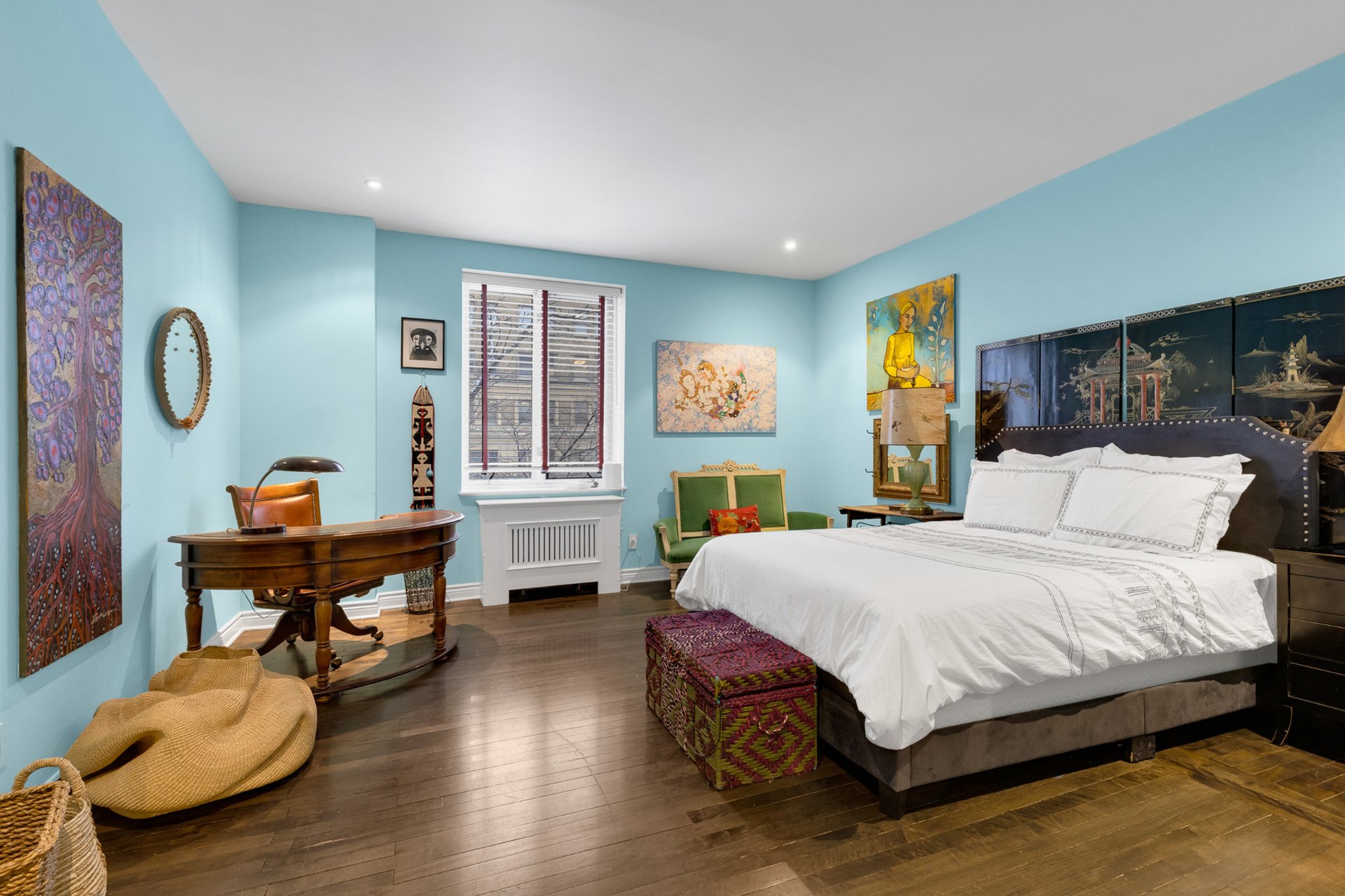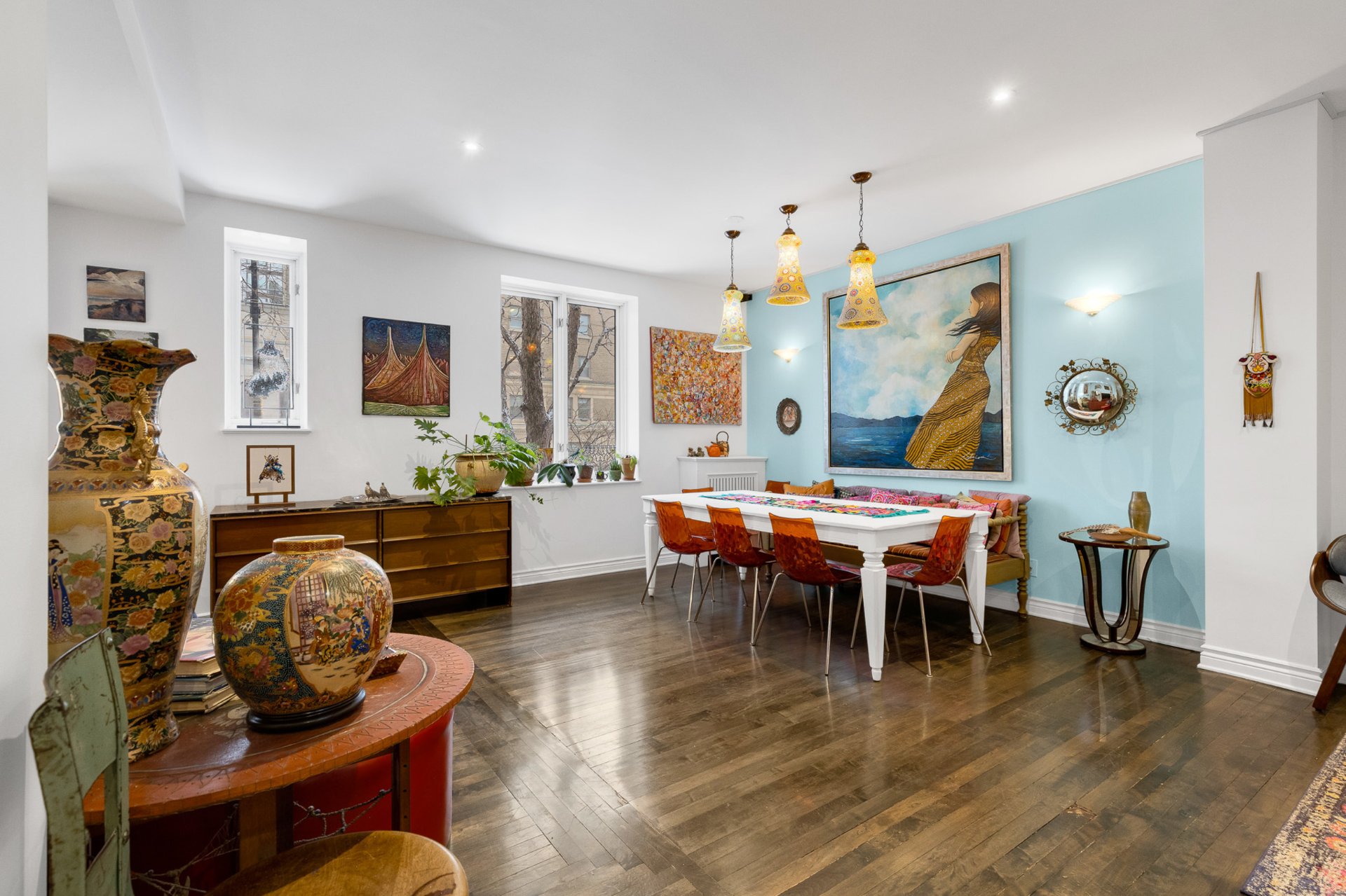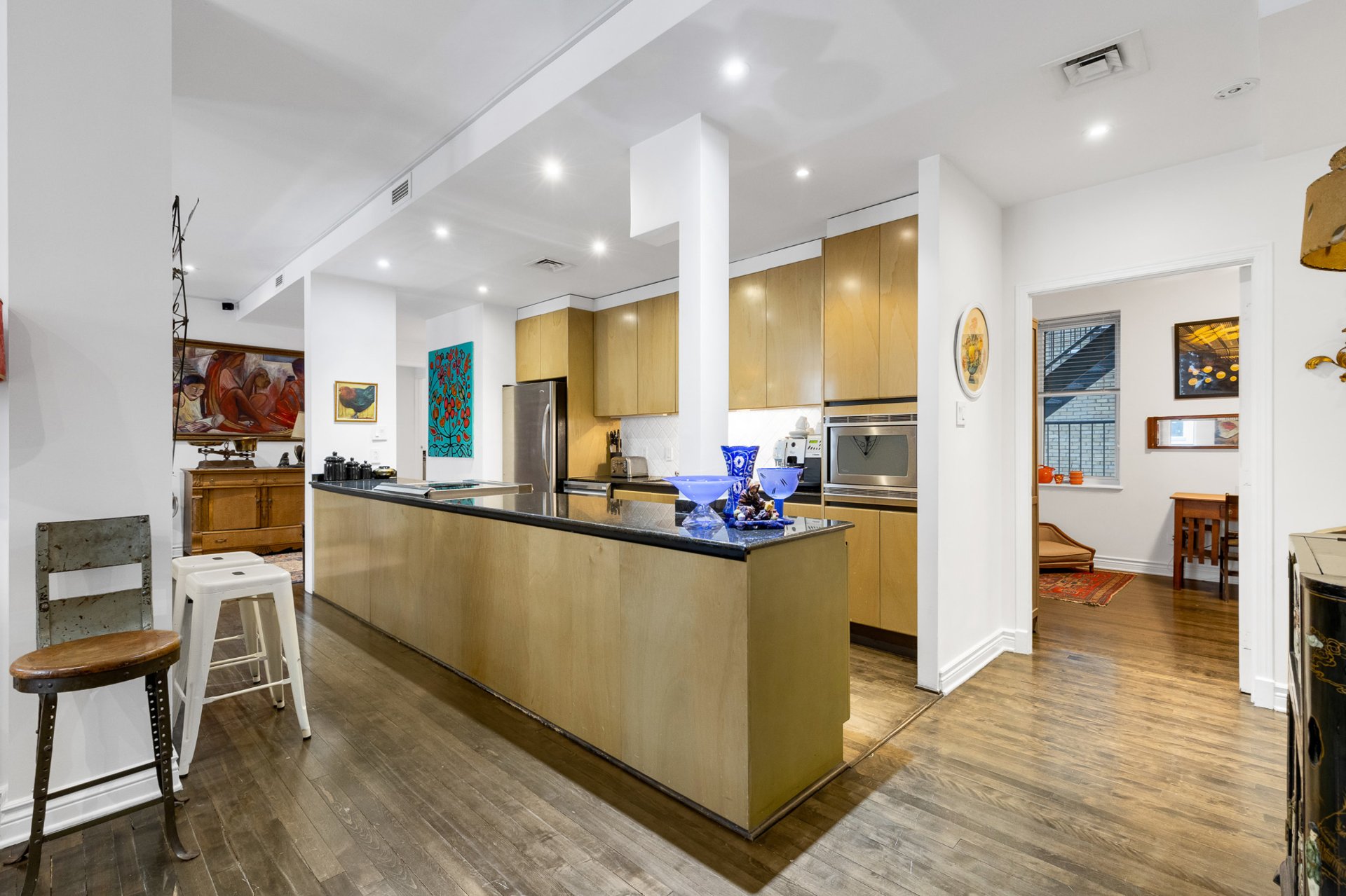 -Beautifully preserved original hardwood floors and soaring
