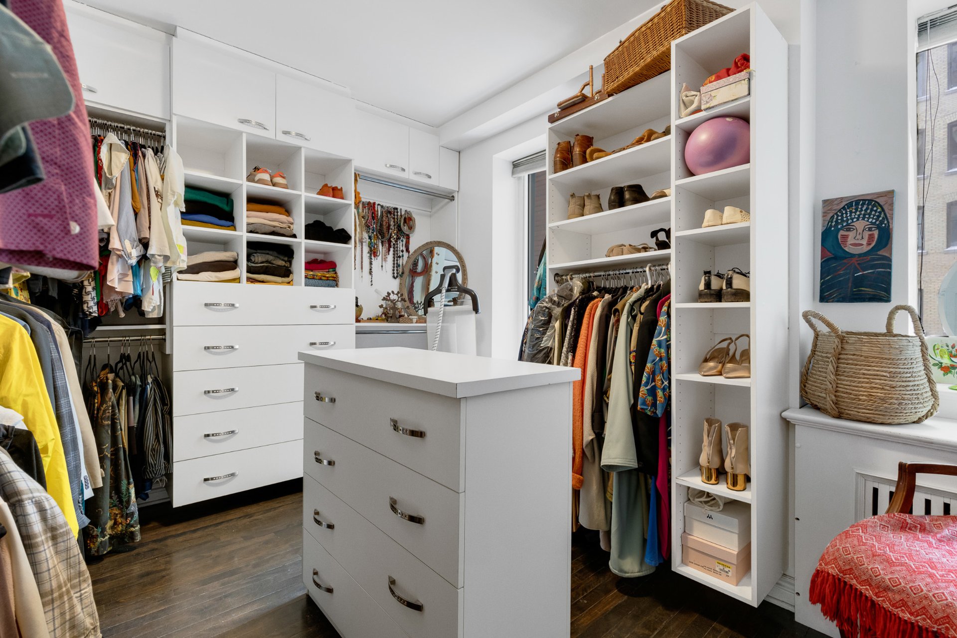separate dressing room, built-in cabinetry and centre island